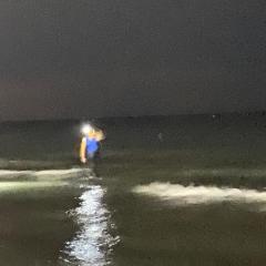 Mittagszeit an. Wir verabredeten uns für abends um 21:30 Uhr an der Strandpromenade. Zusammen gingen wir an den Strand und zeigten ihm die Stelle im Wasser (ca. 20 Meter vom Strand entfernt).