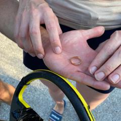 Nach meiner Beschreibung der Stelle, an deren ich den Verlust vermutete, machte er sich hoch motiviert auf die Suche. Nachdem mein Mann den Verlustort nochmal korrigiert hatte, dauerte es keine 10